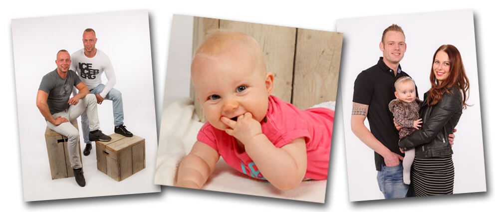 In onze winkel in Naaldwijk beschikken wij over een professionele fotostudio. In deze studio maken wij mooie portretfoto's. Wij maken foto's van grote groepen, gezinnen, stelletjes, kinderen, baby'tjes en zelfs je huisdier mag op de foto komen!