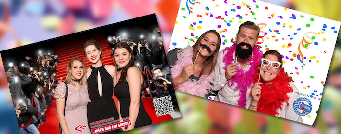 De photobooth wordt volledig naar jouw wensen aangepast. Je kunt zelf achtergronden, teksten, logo's enz kiezen. Alles is optioneel en de mogelijkheden zijn oneindig.